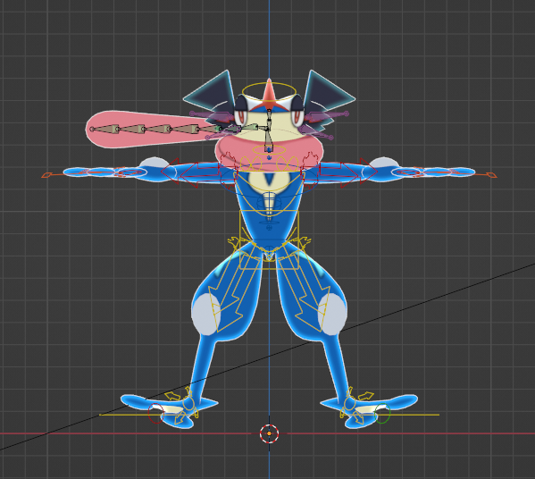 A Greninja using Blenders RIGIFY rigging system. Comes with a basic cell shader that ONLY functions in Blender 3.4 and ABOVE.